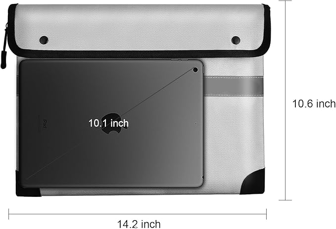 - Spacious Yet Portable - Measuring 10.6"x14.2", this fireproof bag provides ample space to store A4 documents, passports, birth certificates, cash, and more—without sacrificing portability. Lightweight and easy to carry, it’s the ideal companion for everyday security.