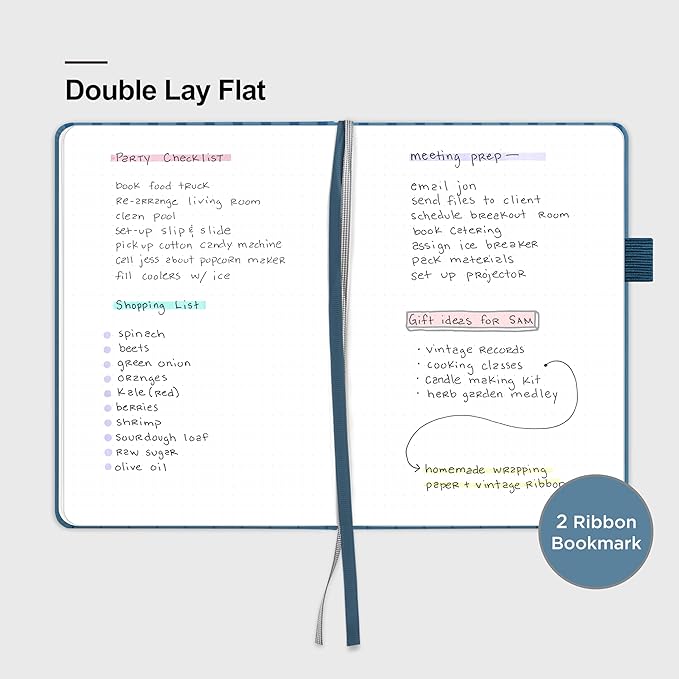 - 180Β° LAY-FLAT DESIGN: The lay-flat design allows for easy writing and ensures that you can utilize every page efficiently. Journaling, note-taking and planning has never been easier! 2 Bookmarks to help you find important content faster
