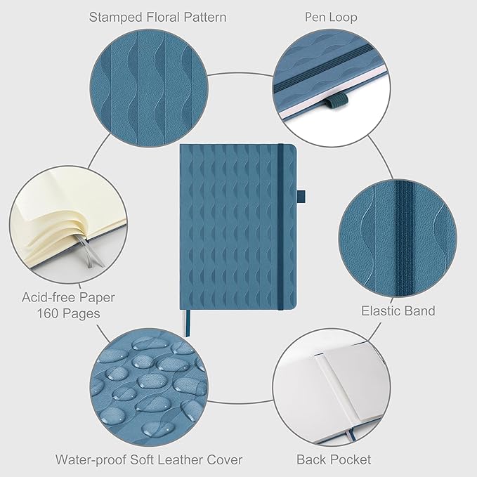 - DURABLE HARDCOVER NOTEBOOK: Durable PU leather hardcover, protects ruled notebook from wear and tear, provides a comfortable writing surface. Expandable back pocket includes free stickers can holds notes, business cards, small gadgets