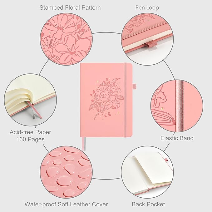 - 160 PAGES THICK DOTTED JOURNAL: 80 sheets/160 dotted paper notebook to provide you ample space to write. A5 size 5.7'' Γ 8'', perfect size for carrying around or put into your bag or purse, a convenient choice for on-the-go individuals