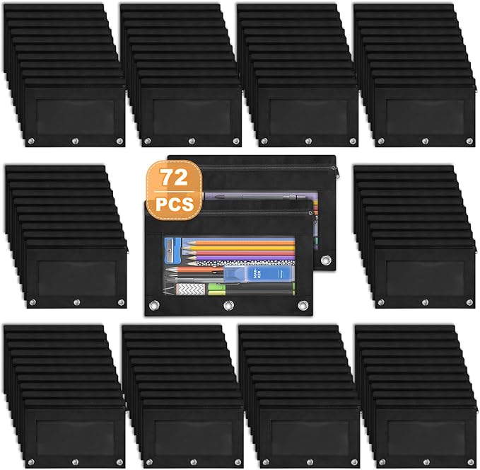 Shemira Pencil Pouch for 3 Ring Binder, 72 Pack Black Pencil Pouches Bulk, Pencil Pouch with Smooth Zipper, Zipper Pencil Pouches, 3 Ring Binder Pencil Pouch‘es, Clear Window Pencil Case Pouch
