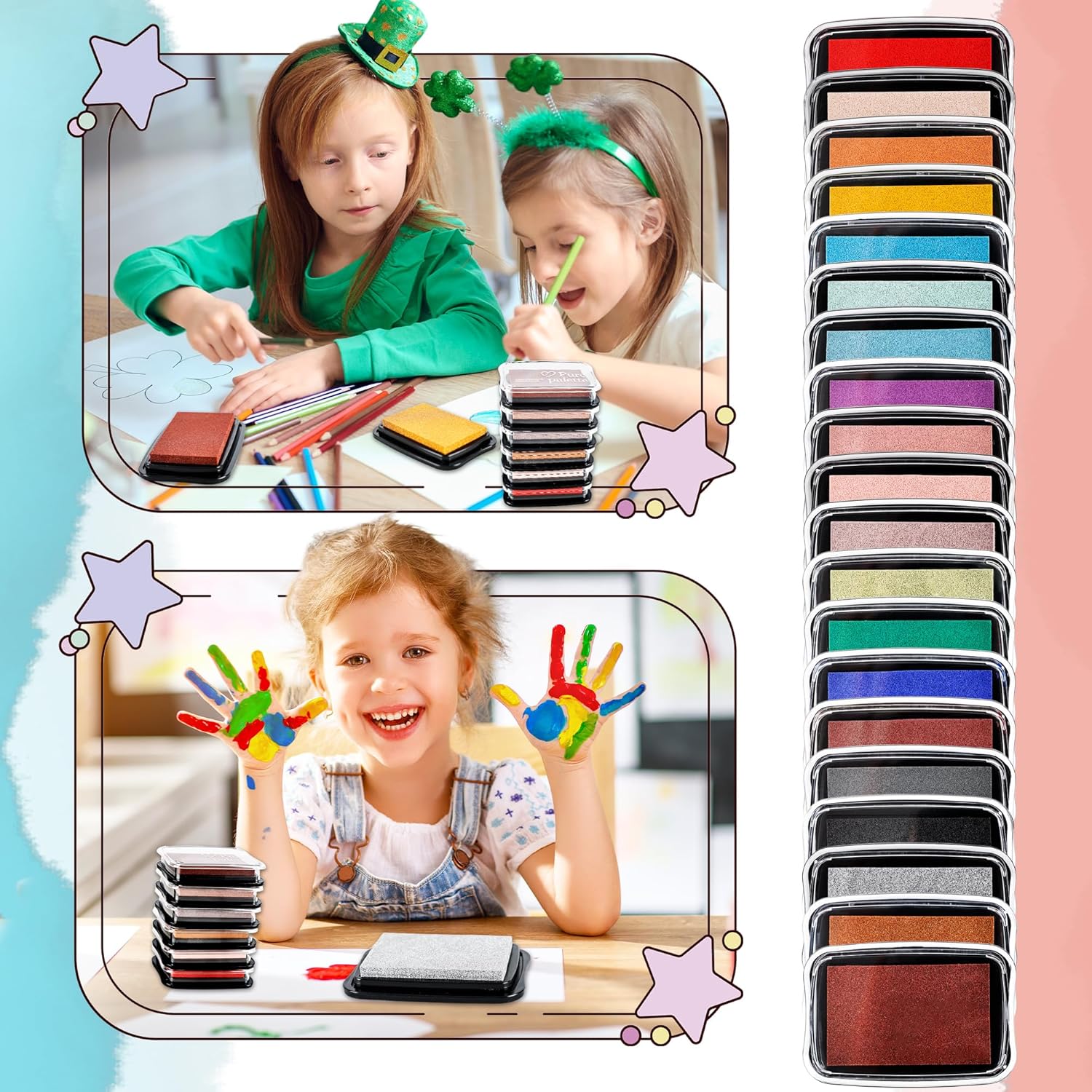 - ✅What You Can Get: The stamp ink pad set includes 20 distinct colors, offering a wide spectrum for artistic expression, making it an ideal choice for nurturing children's interest in art