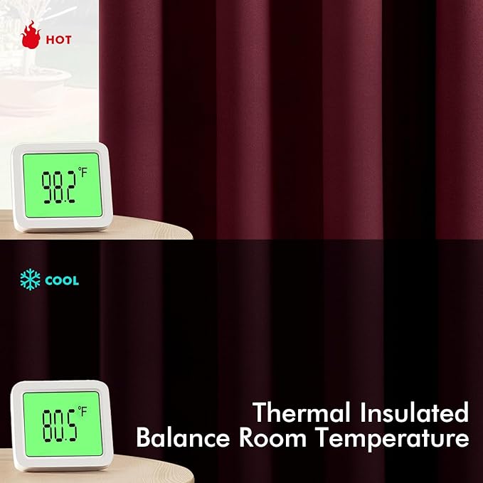 - High-Quality Material: Crafted from high-quality 225GSM polyester fabric, these curtains offer enhanced durability and elegant drape. The soft blackout material features triple-layer weaving technology, with a middle layer of black yarn for superior light blocking and privacy. Both sides feature the same refined color, ensuring a seamless look that elevates your home’s aesthetic with understated sophistication