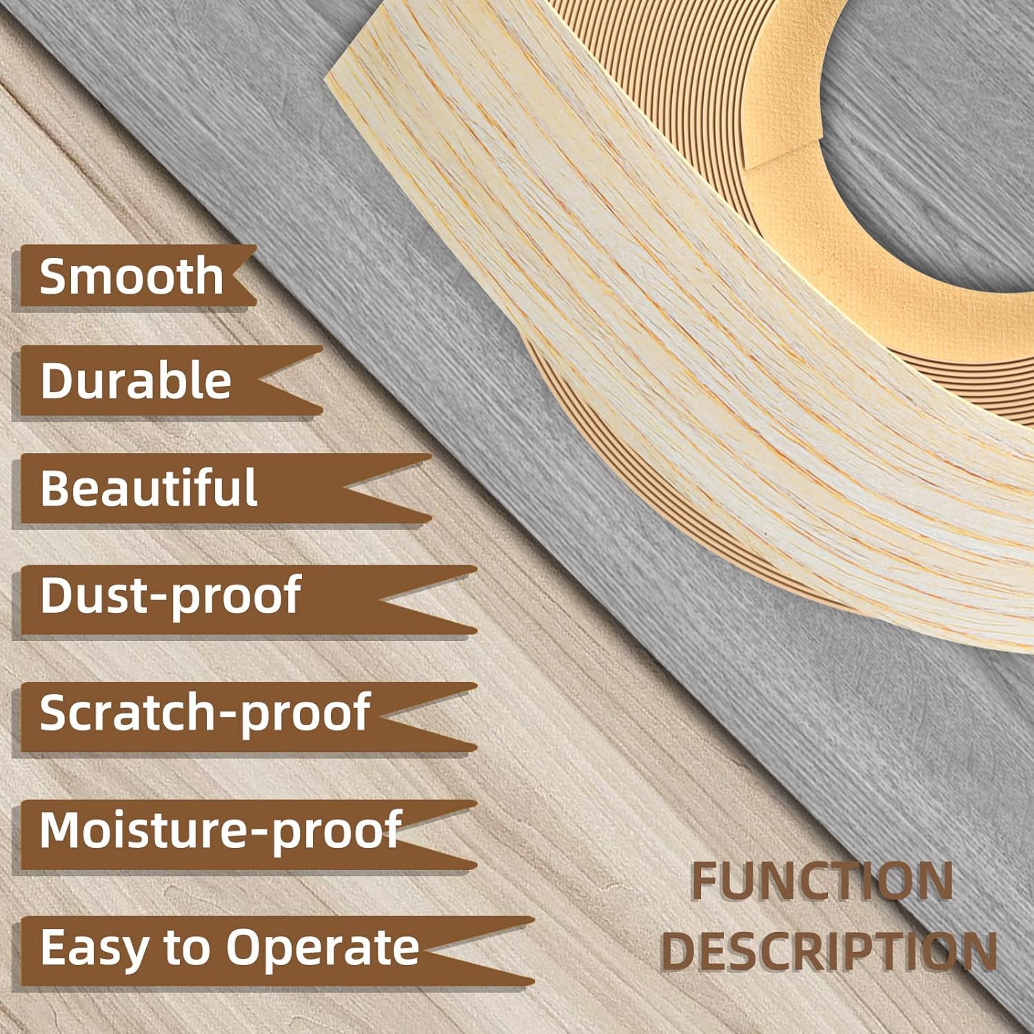- √【HIGH QUALITY】- The edge banding is made of high quality real wood material, which is durable and elastic, with a smooth surface and not easy to be dirty.When you repair Laminate and Cabinets, Oak Edge banding will be your first choice.