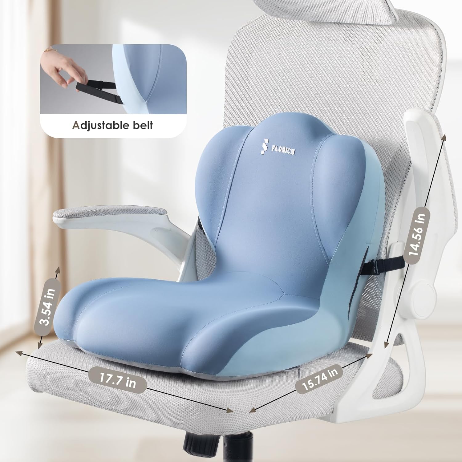 FLORICH Memory Foam Truck Seat Cushion with Adjustable Strap,Seat Cushion and Lumbar Support Pillow for Car Office Chair, Ergonomic Back Support & Sciatica Relief for Long Drives(Blue)