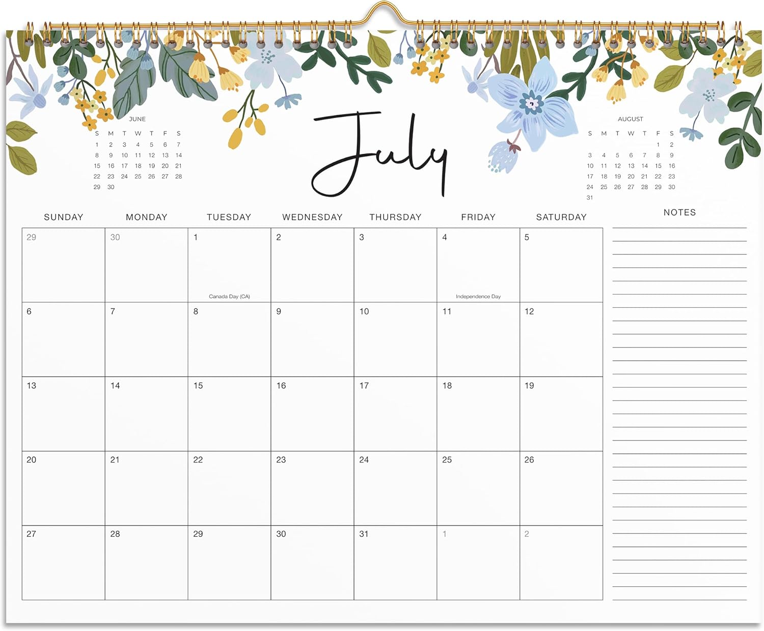2025-2026 Wall Calendar, Gimoner Calendar 2025, 18 Months Calendar Runs From July 2025 - December 2026, 15" x 12", Twin-Wire Binding, Hanging Hook, Floral Design