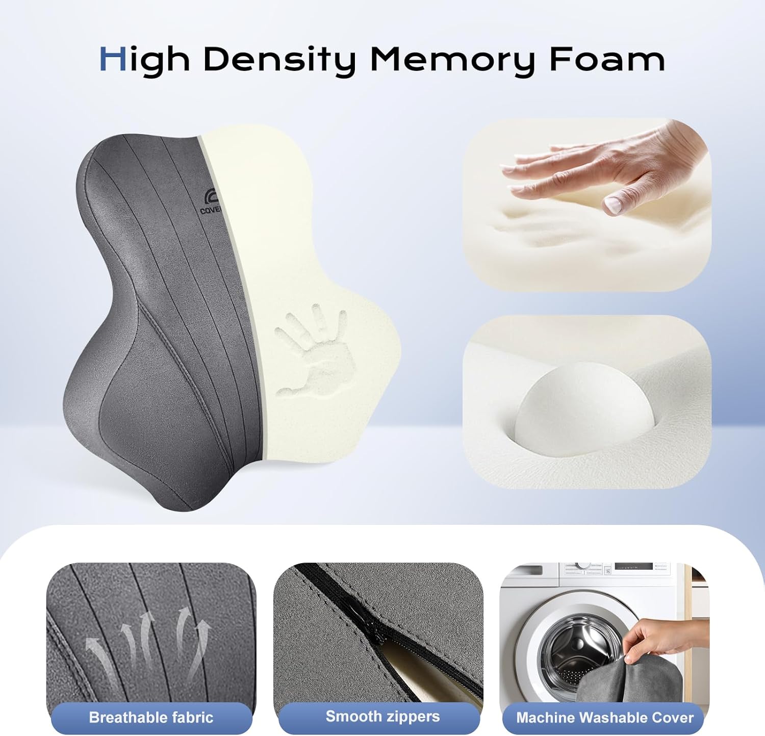 - Premium Memory Foam: The neck pillow and lumbar support kit is made of memory foam. It responds to your body pressure and precisely conforms to the curves of your neck and lower back. It offers personalized support and reduces stress on your spine. After you get out of the car, it quickly regains its original shape, ensuring long - term durability