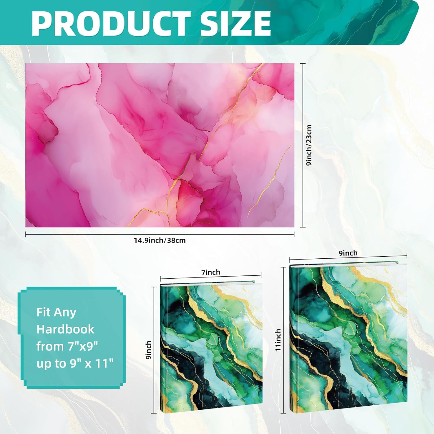 - 9 Marble Fabric Book Covers – Includes 9 covers with unique marble patterns. Stylish, colorful, and easy to tell your books apart.