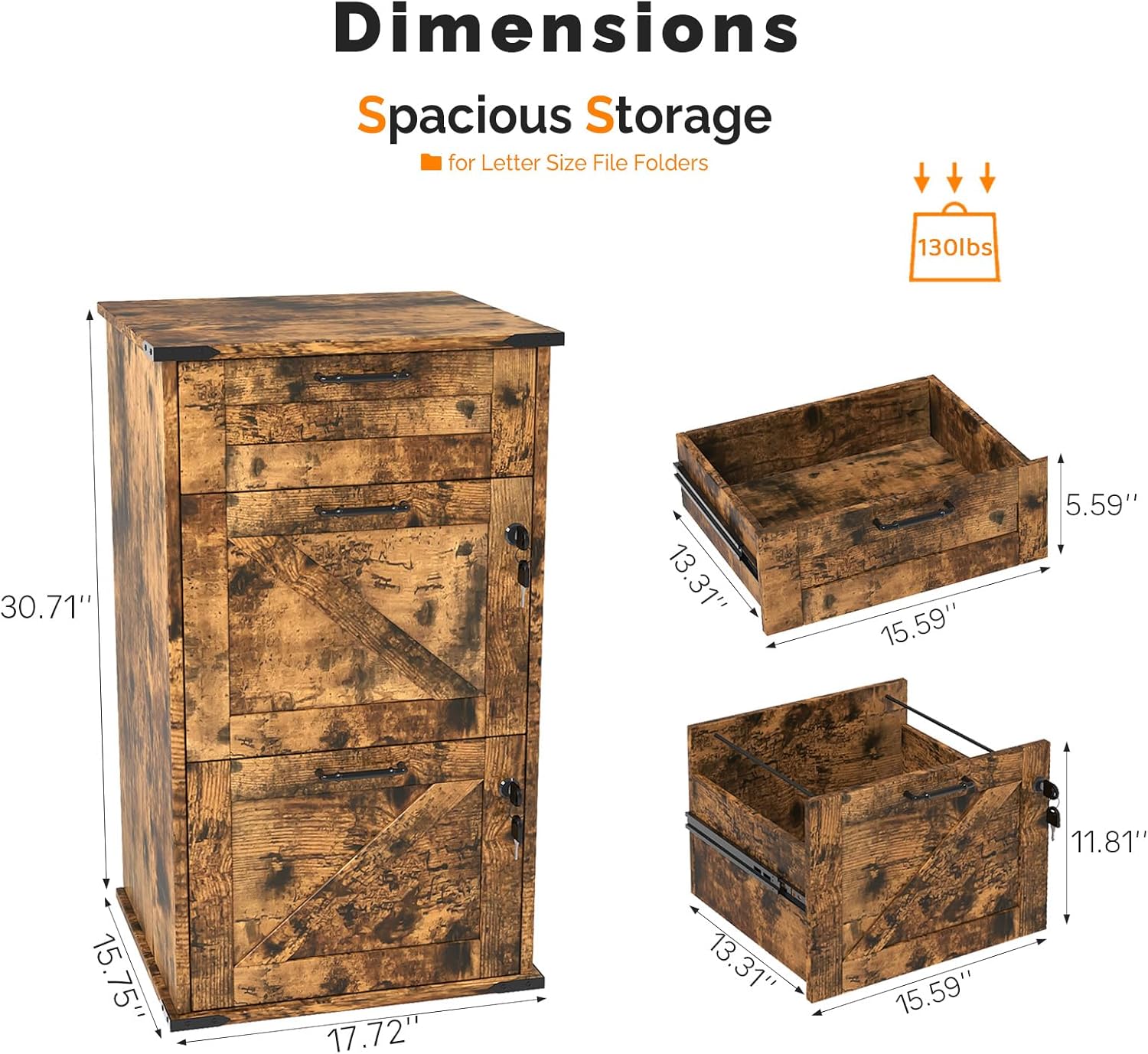 - 【Charming Farmhouse Style】This file cabinet, with its barn door elements and ingenious appearance design, showcases unique charm and stands out, adding farmhouse charm to your home while also being able to enliven any office, study or living room.