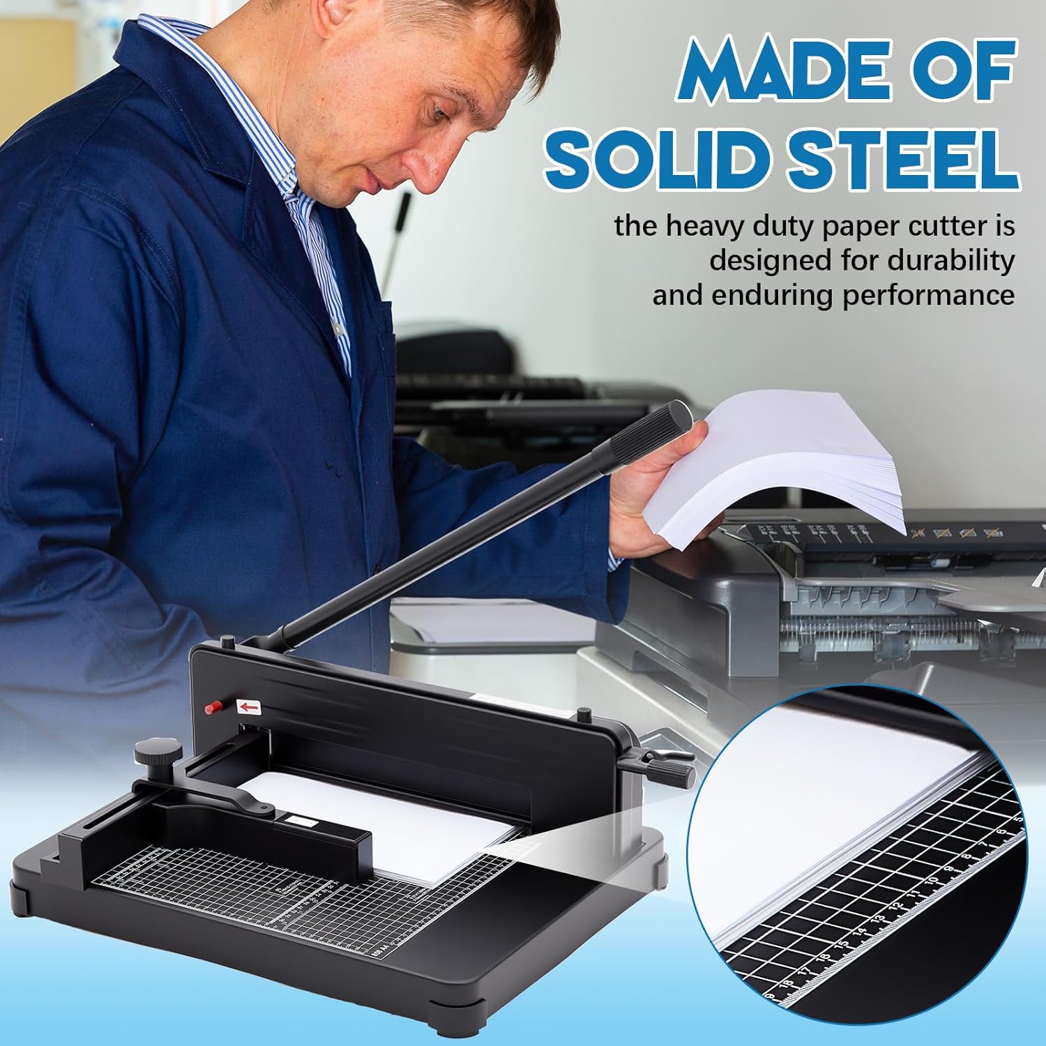 - Sturdy and Durable: made of solid steel, the heavy duty paper cutter is designed for durability and enduring performance; The sharp steel blade ensures precise and smooth cutting, stable rubber feet add to its steadiness, eliminating the worry of slipping