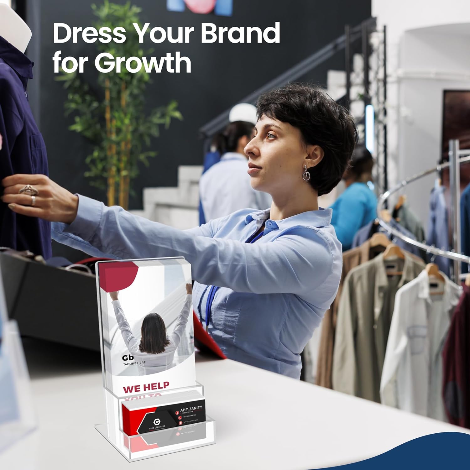 - *DUAL FUNCTION DESIGN Our Brochure holder features a spacious brochure compartment and an integrated business card holder for a professional display.