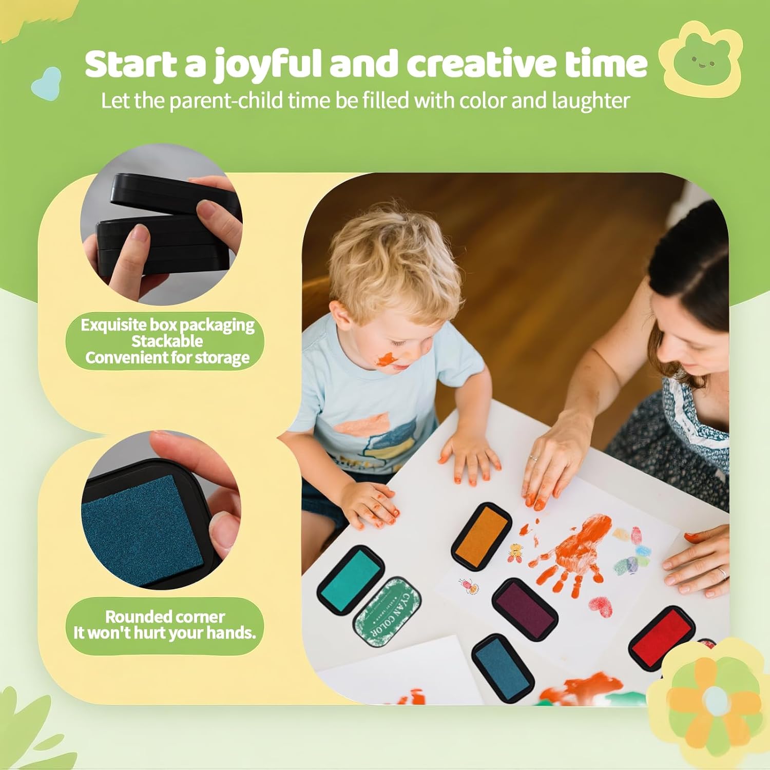 - 【XoreArt ink pad 】XoreArt is committed to helping everyone discover practical and high-quality products in daily life. We pursue better quality and lower prices. We are satisfied and proud of the finger painting ink pad we provide. Finger painting means that children immerse their bare hands in appropriate paints and perform artistic activities in the form of fingerprints, hand prints, and graffiti on paper and flat media.