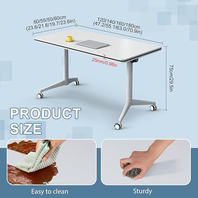 - 【Sturdy & Long-Lasting Build】Crafted with 25mm thick boards and aluminum alloy brackets, this seminar table resists bending—even with heavy use. Our rolling conference room tables are also waterproof, stain-proof, and scratch-resistant, so our folding conference table stays looking new for years. Durable enough to keep up with your busiest days.
