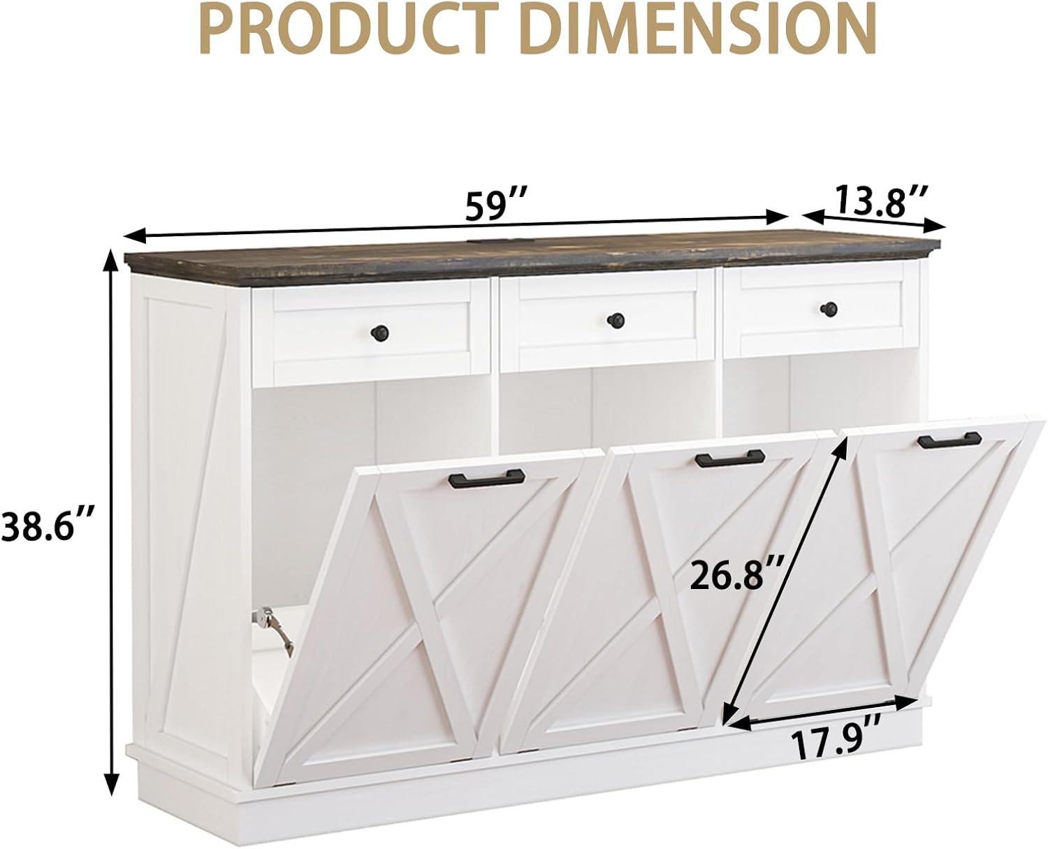 - Hide Mess, Reveal Style: Tired of staring at a bulky trash bin? This hideaway trash can cabinet conceals odors and clutter behind its tilt-out door, keeping your kitchen or laundry room instantly tidy. Fits standard 13-gallon bags (dimensions: 59"L x 13.8"W x 38.6"H), yet looks sleek enough to complement farmhouse or modern decor